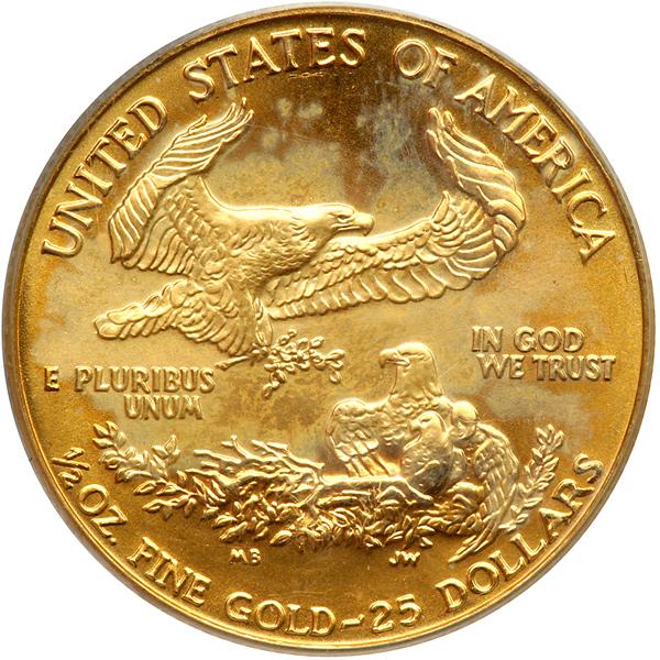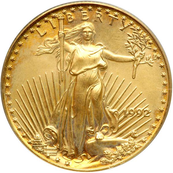 1992 $25 Gold Eagle. PCGS graded MS-69. Nice golden toning. Contains ½ oz. of gold (PCGS # 9862) .