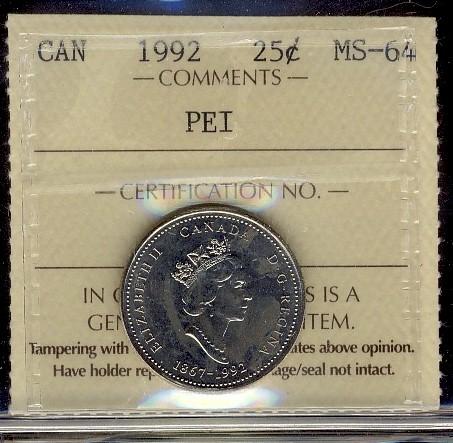 1992 25¢ PEI ICCS MS64.