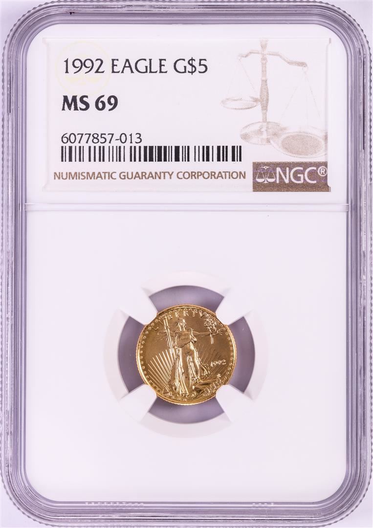 One 1992 $5 American Gold Eagle Coin NGC MS69. NGC Certified.