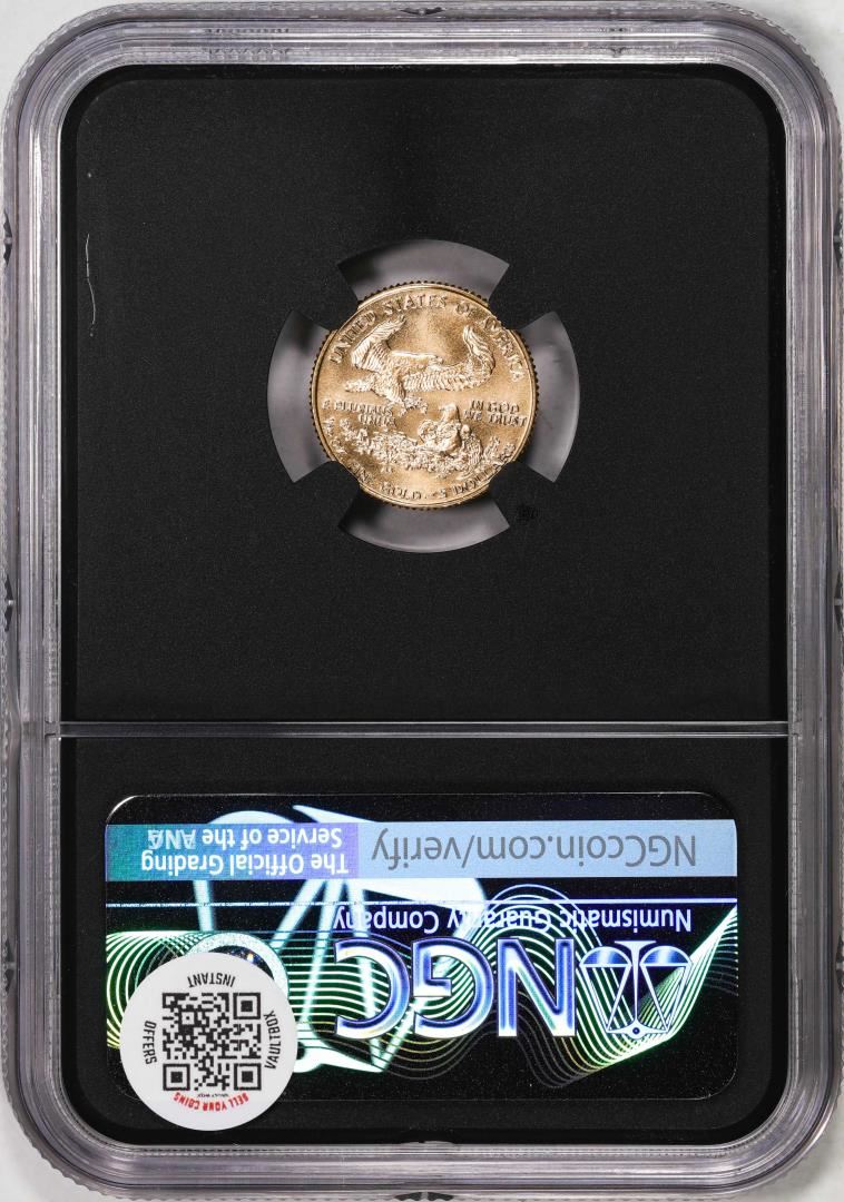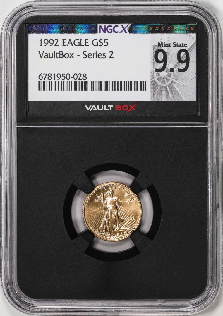 One 1992 $5 American Gold Eagle Coin NGCX Mint State 9.9 VaultBox Series 2. NGC Certified.
