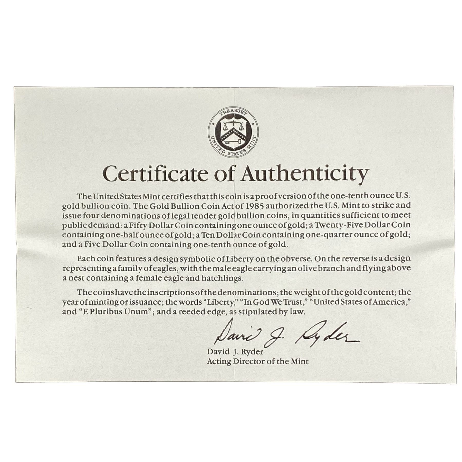 1992 $5 Gold American Eagle 1/10oz PF w/Box