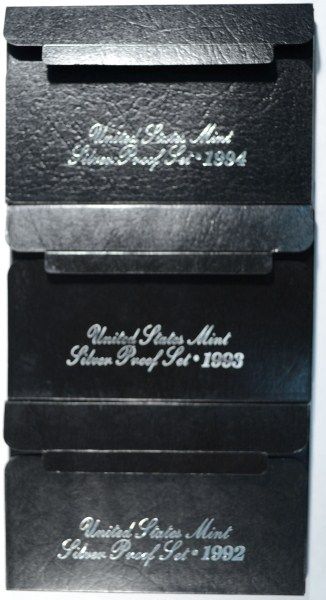 1992, 93, AND 94 UNITED STATES SILVER PROOF SETS, NICE ORIGINAL MINT PACKAGING