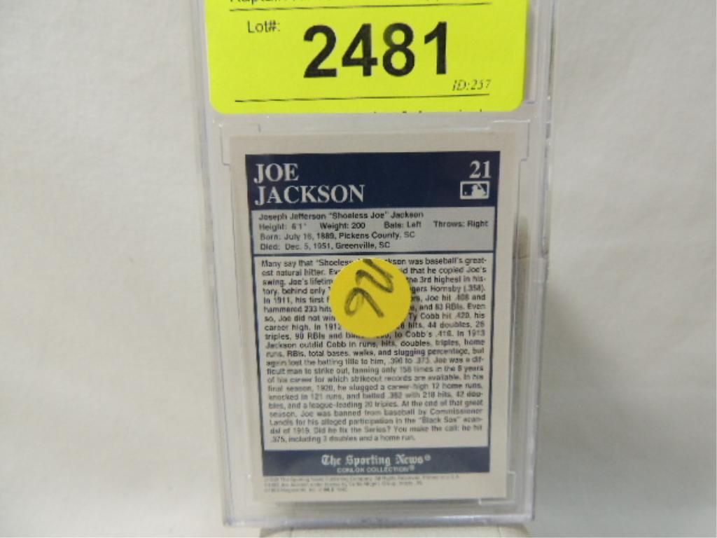 1992-93 CONLON TSN COLOR INSERTS #21 JOE JACKSON CARD 444 GRADED 10 MINT OR BETTER BCCG.