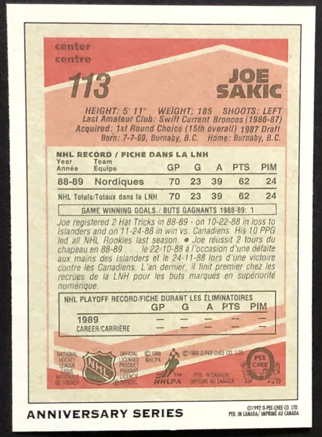 Card #22 hockey, OPC, hall of fame