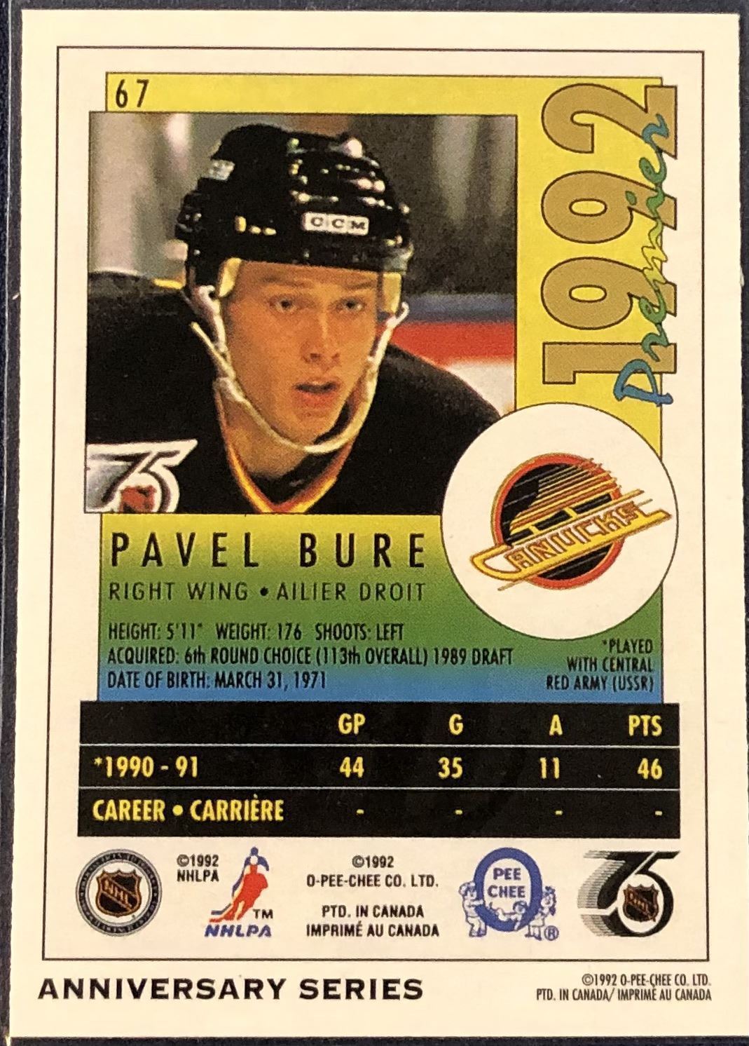 Card #25 NHL, hockey, OPC, hall of fame