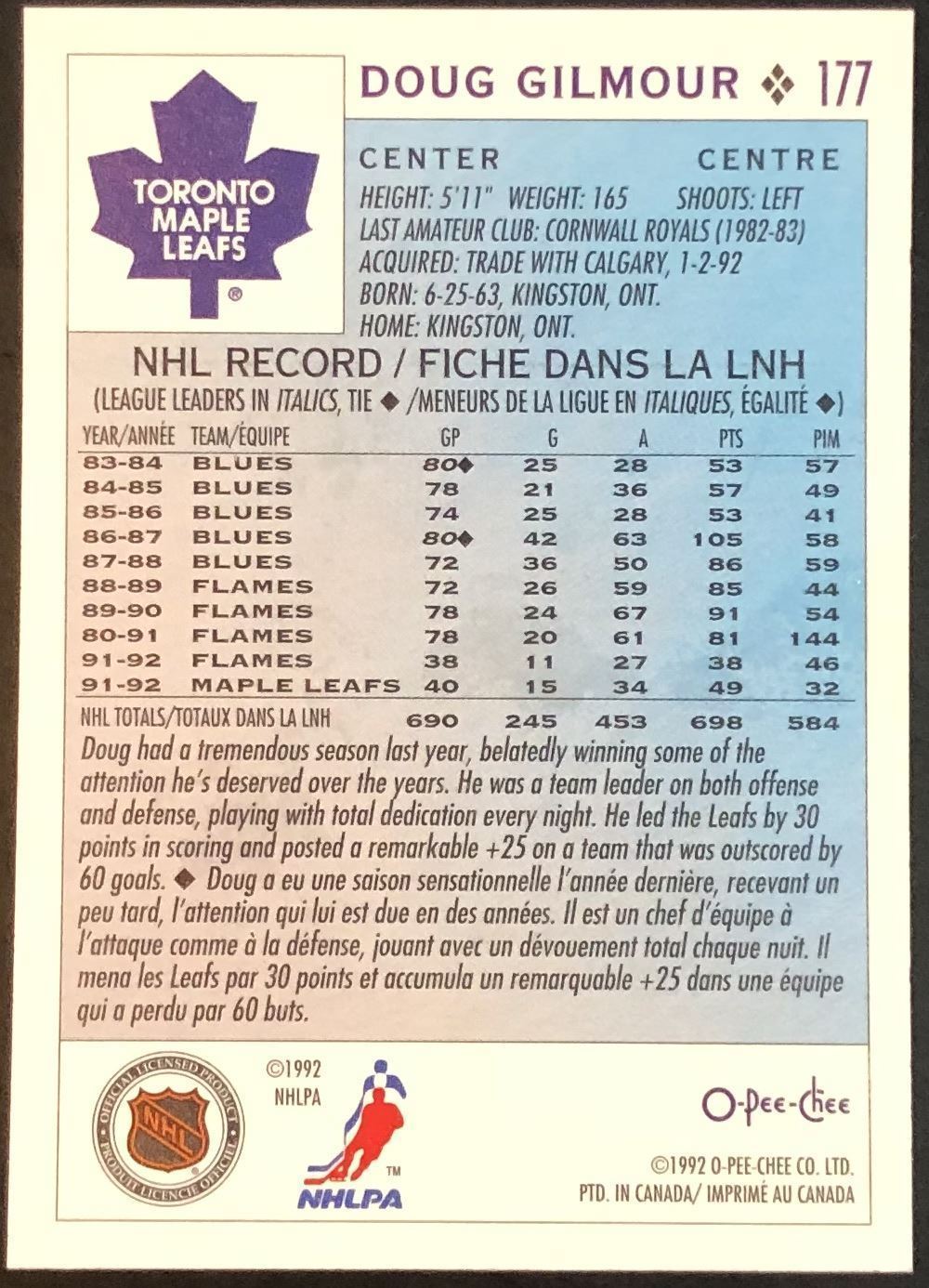 Card #177 NHL, hockey, OPC, hall of fame