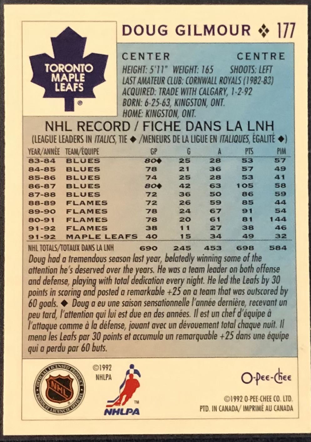1992-93 O-PEE-CHEE DOUG GILMOUR (HOF)