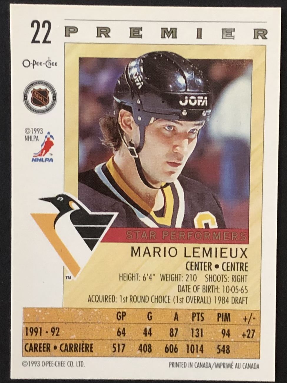 Card #22 OPC, NHL, hall of fame