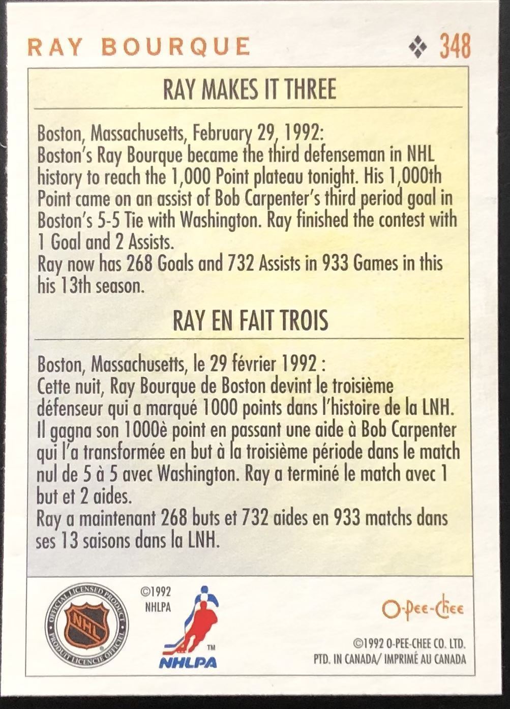 Card #348 NHL, hockey, hall of fame, OPC