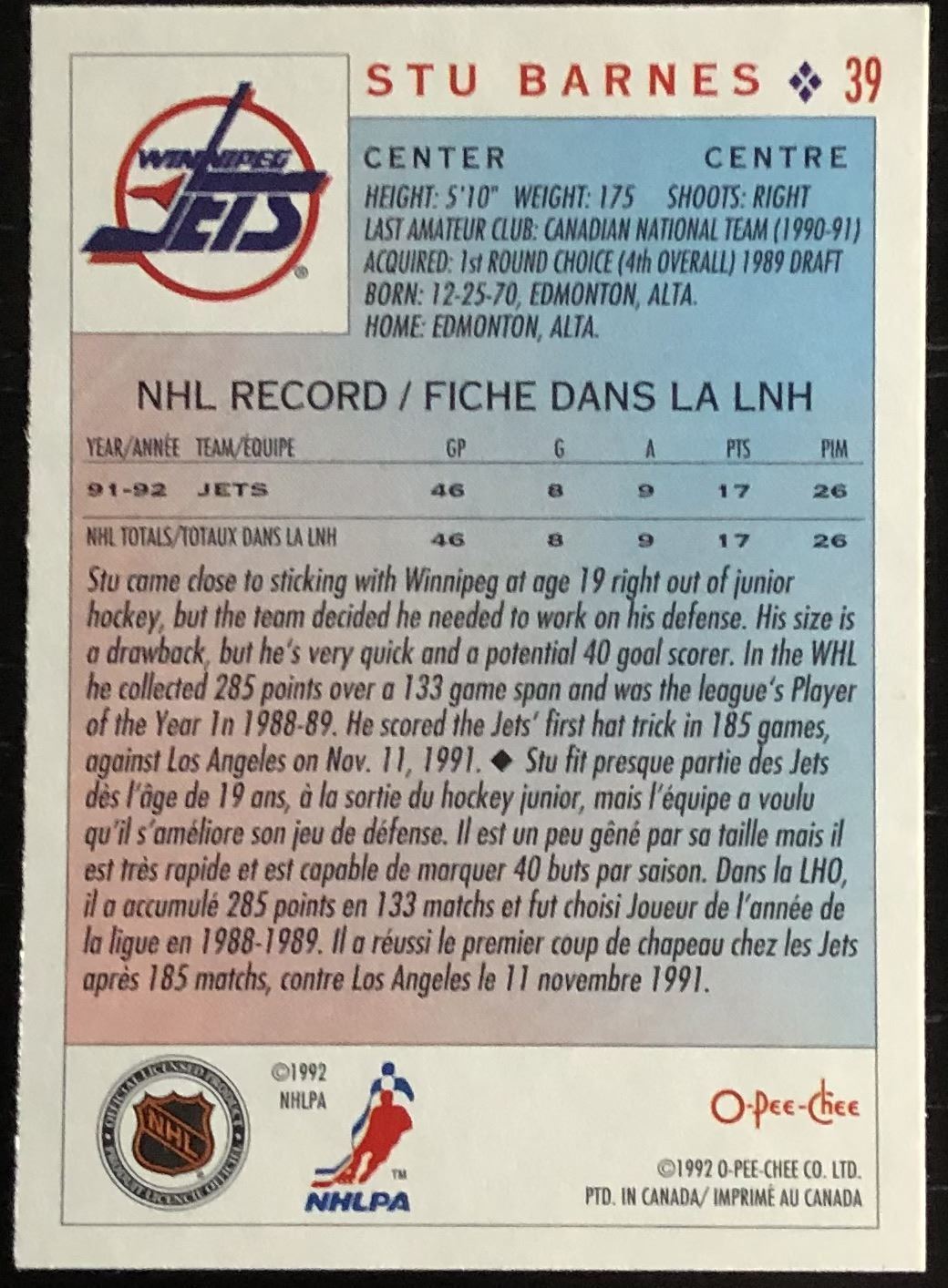 Card #39 OPC, NHL, hockey, vintage, rookie