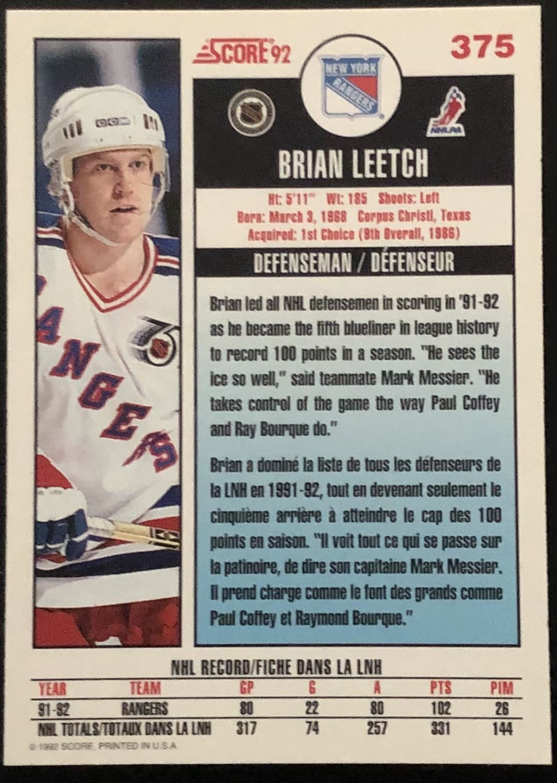 Card #375 hockey, NHL, hall of fame