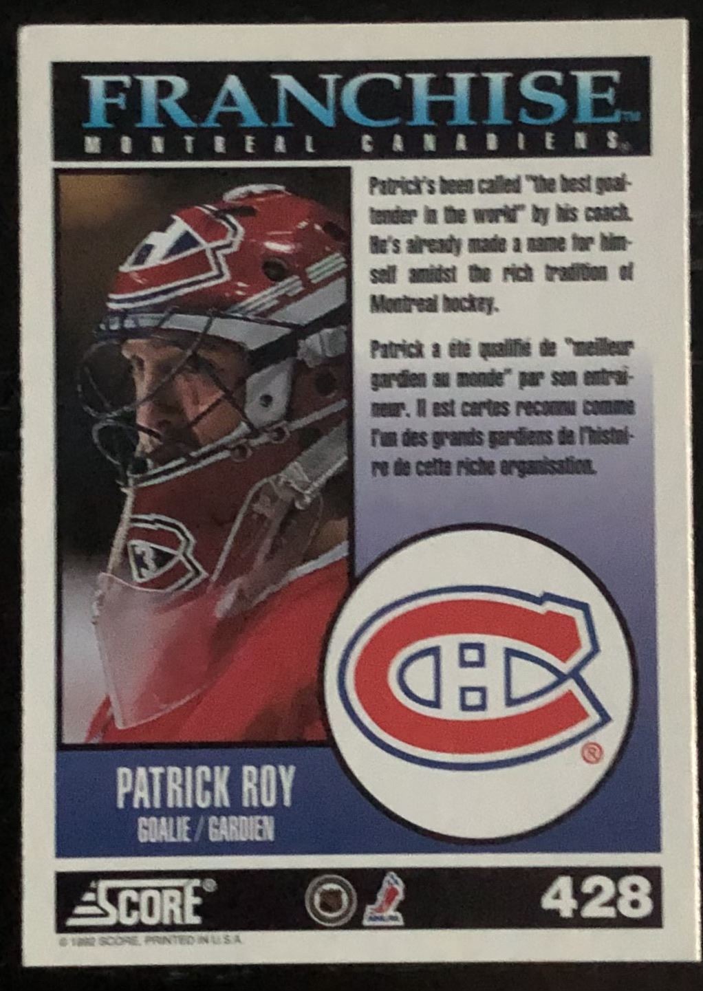 Card #428 NHL, hockey, hall of fame