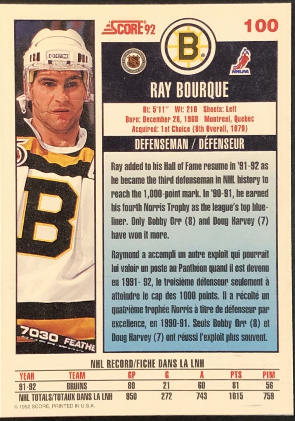 Card #100 hockey, hall of fame