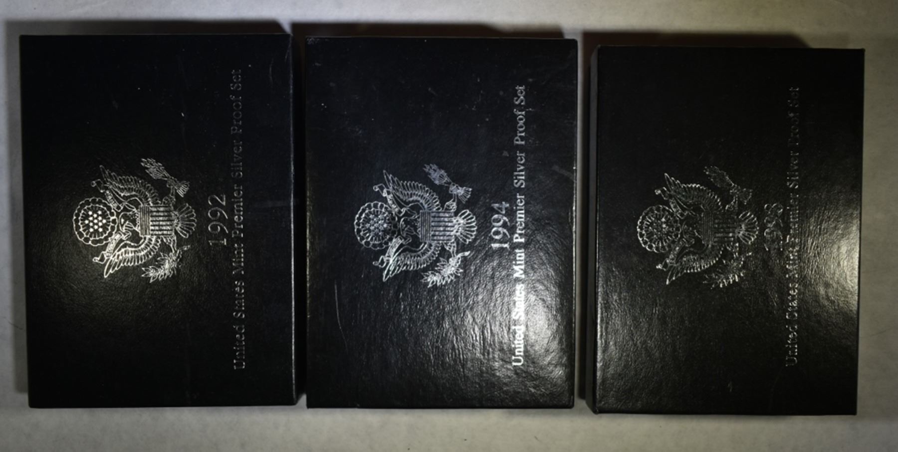 1992, 94 & 98 U.S. MINT PREMIER SILVER PROOF SETS