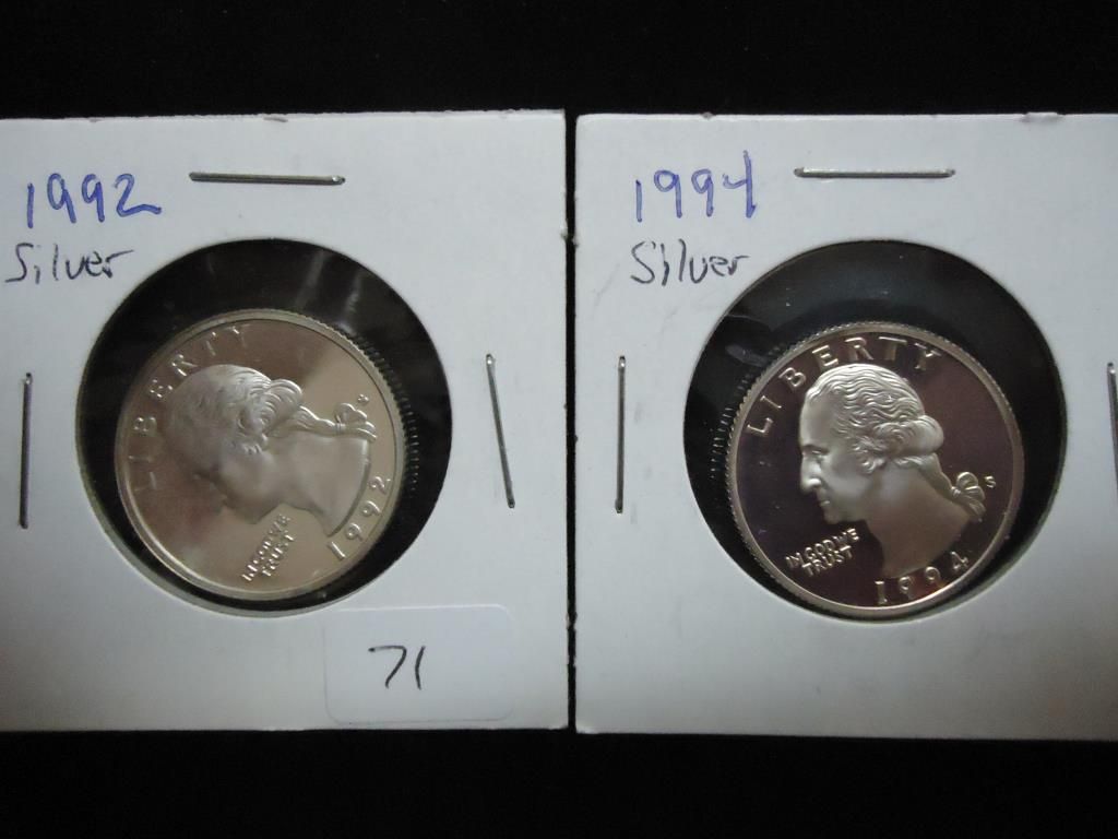 1992 & 94 WASHINGTON SILVER PROOF QUARTERS