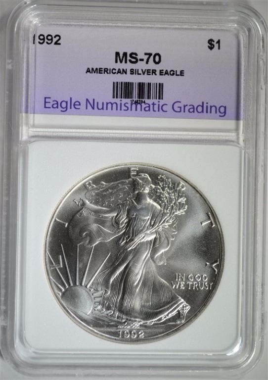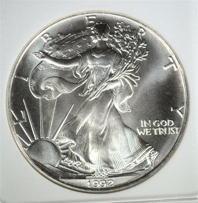 1992 AMERICAN SILVER EAGLE, ENG PERFECT GEM BU ESTIMATE $1500 - $1600.