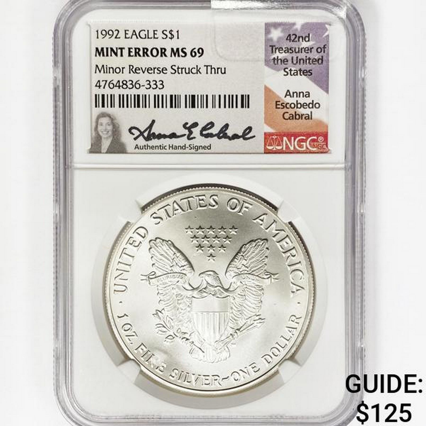 1992 ASE Escobedo Signed NGC MS69 Struck Thru
