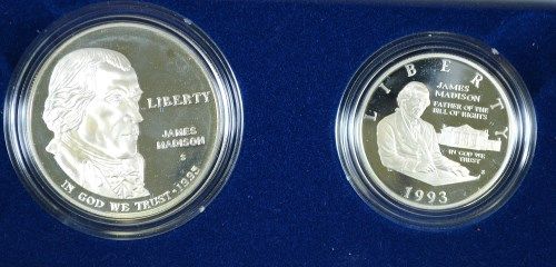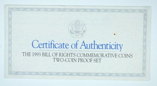 1992 BILL OF RIGHTS 2 PIECE PROOF COMMEMORATIVE SET, ORIG. BOX/CERT