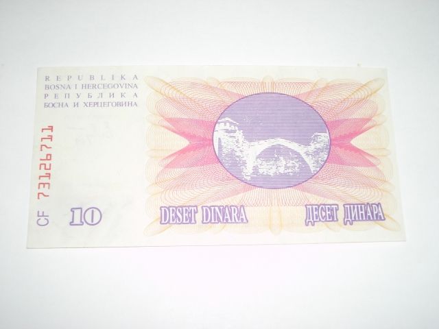 1992 BOSNIA 10 DINARA NOTE *RARE UNC HIGH GRADE NOTE*!! ***Coin, Currency & All Items Listed in this auction - Grades, Conditions and Values are not Safe Deposit Coins LLC Responsibilty. Grades, Condition and Values are determined by Consigner(s) & Buyers ONLY***