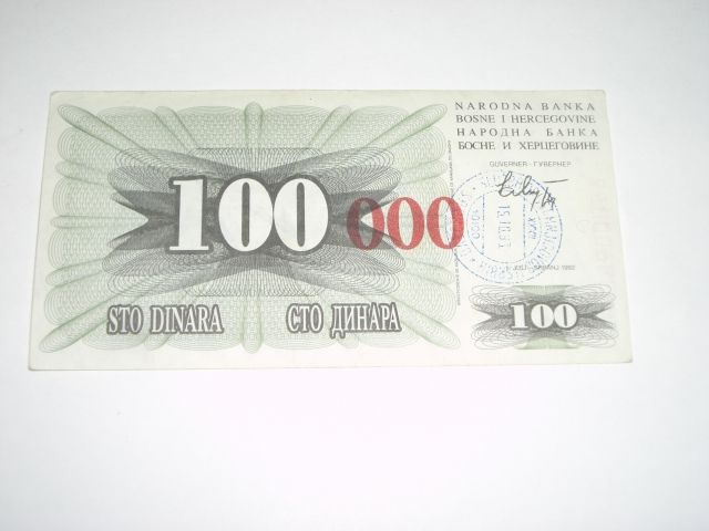 1992 BOSNIA 100 000 DINARA NOTE *EXTREMELY RARE UNC HIGH GRADE NOTE*!! ***Coin, Currency & All Items Listed in this auction - Grades, Conditions and Values are not Safe Deposit Coins LLC Responsibilty. Grades, Condition and Values are determined by Consigner(s) & Buyers ONLY***