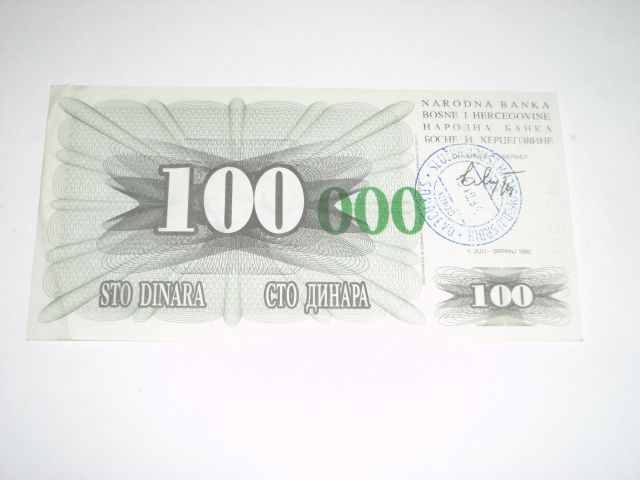 1992 BOSNIA 100 000 DINARA NOTE *EXTREMELY RARE UNC HIGH GRADE NOTE*!! ***Coin, Currency & All Items Listed in this auction - Grades, Conditions and Values are not Safe Deposit Coins LLC Responsibilty. Grades, Condition and Values are determined by Consigner(s) & Buyers ONLY***