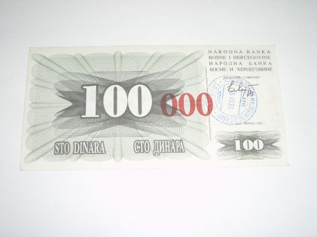 1992 BOSNIA 100 000 DINARA NOTE *EXTREMELY RARE UNC HIGH GRADE NOTE*!! ***Coin, Currency & All Items Listed in this auction - Grades, Conditions and Values are not Safe Deposit Coins LLC Responsibilty. Grades, Condition and Values are determined by Consigner(s) & Buyers ONLY***