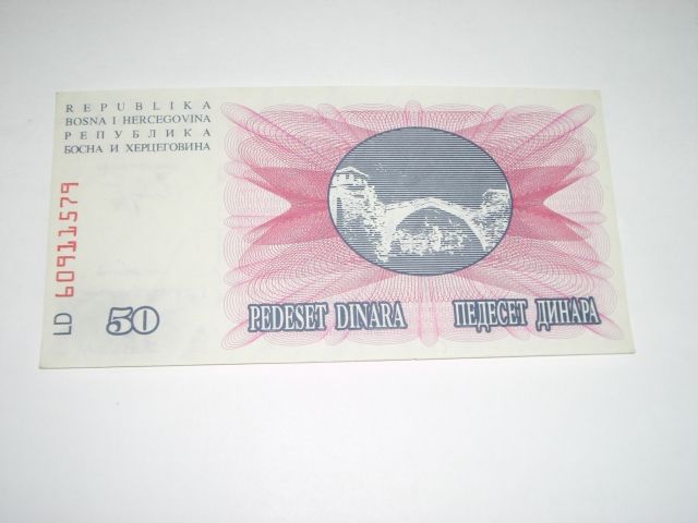 1992 BOSNIA 50 DINARA NOTE *RARE UNC HIGH GRADE NOTE*!! ***Coin, Currency & All Items Listed in this auction - Grades, Conditions and Values are not Safe Deposit Coins LLC Responsibilty. Grades, Condition and Values are determined by Consigner(s) & Buyers ONLY***