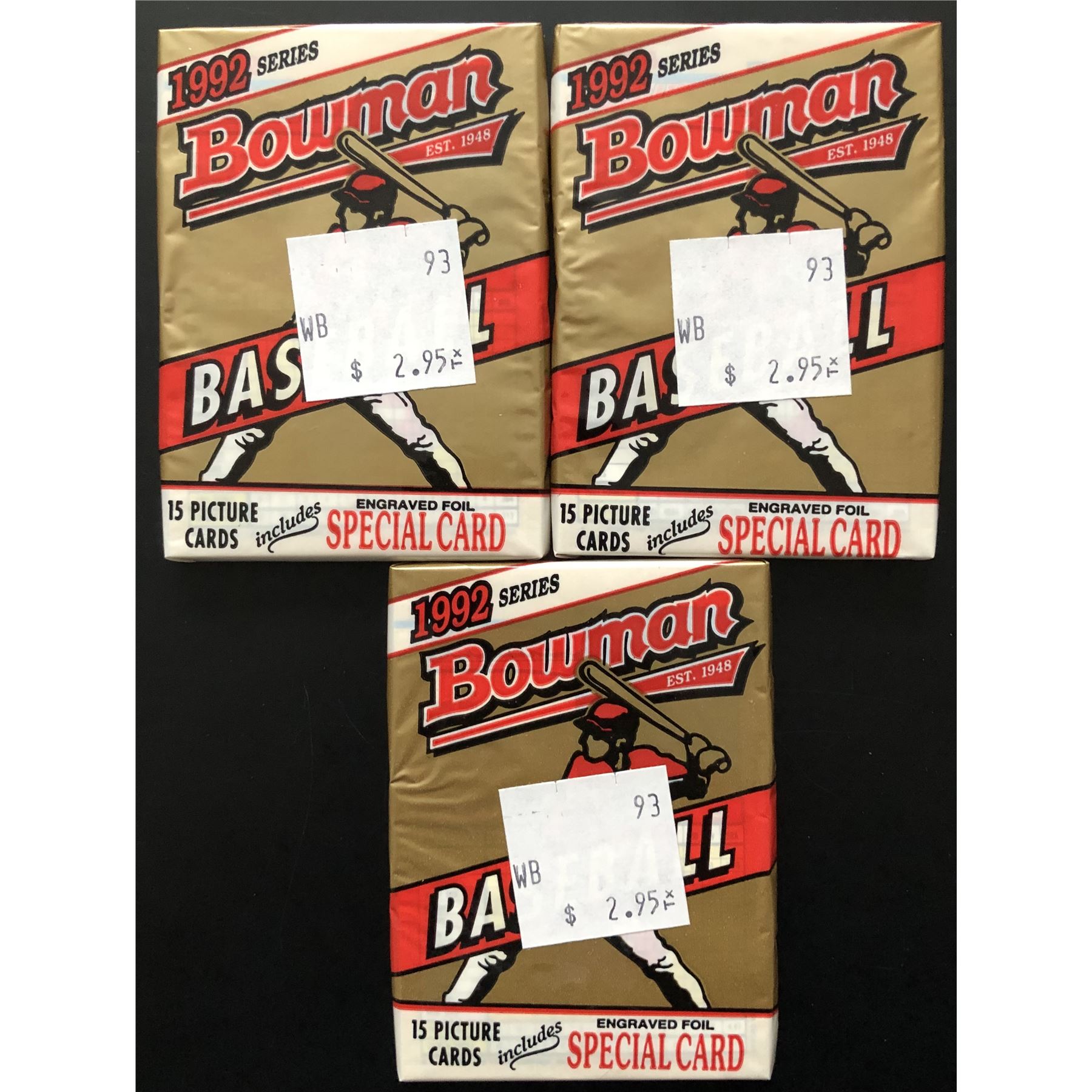 Three sealed cello packs, each containing 15 cards & special engraved foil card MLB, baseball, TOPPS