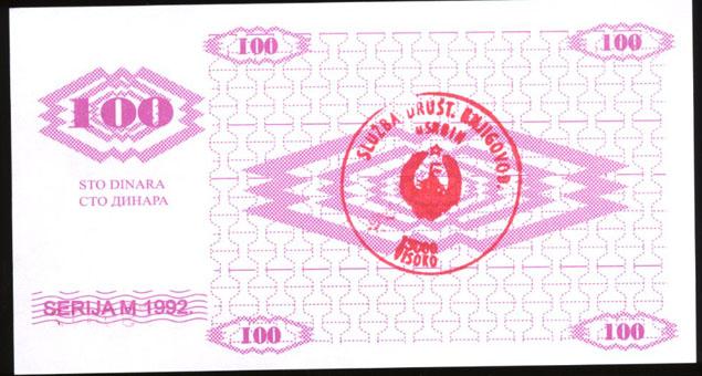Rare note in crisp uncirculated condition; Fojnica variety; book value $70 in XF; estimated $250 in CU
