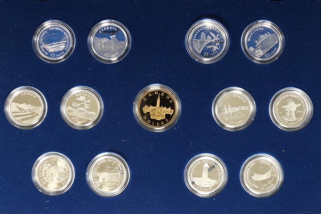 TERRITOIRES QUARTERS AND A $1 ALL PROOF, ORIGINAL ROYAL CANADIAN MINT PACKAGING