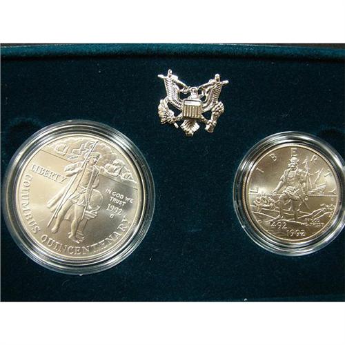 1992 U.S. COLUMBUS QUINCENTENARY COIN SET. Unc. 2 coin set. In case with box.