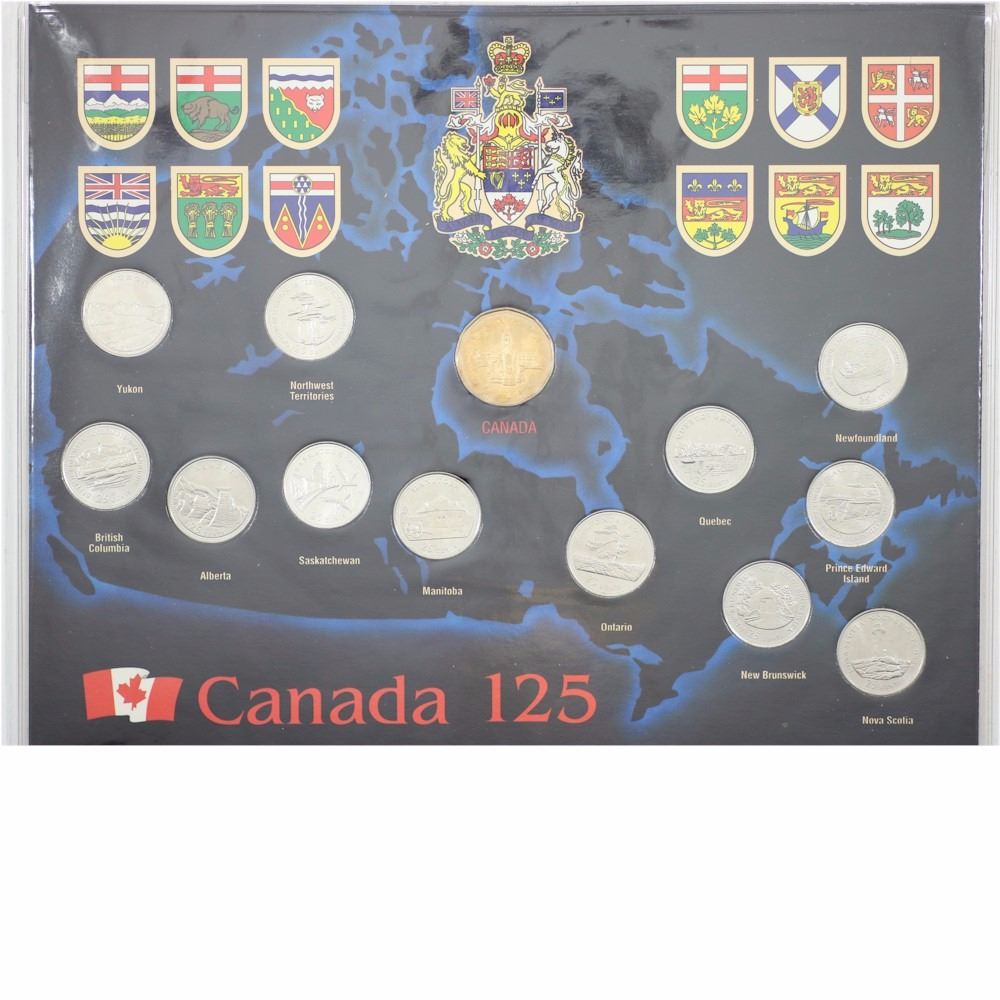 1992 Canada '125' 13-coin 25-cent Map Board with Parliament $1.