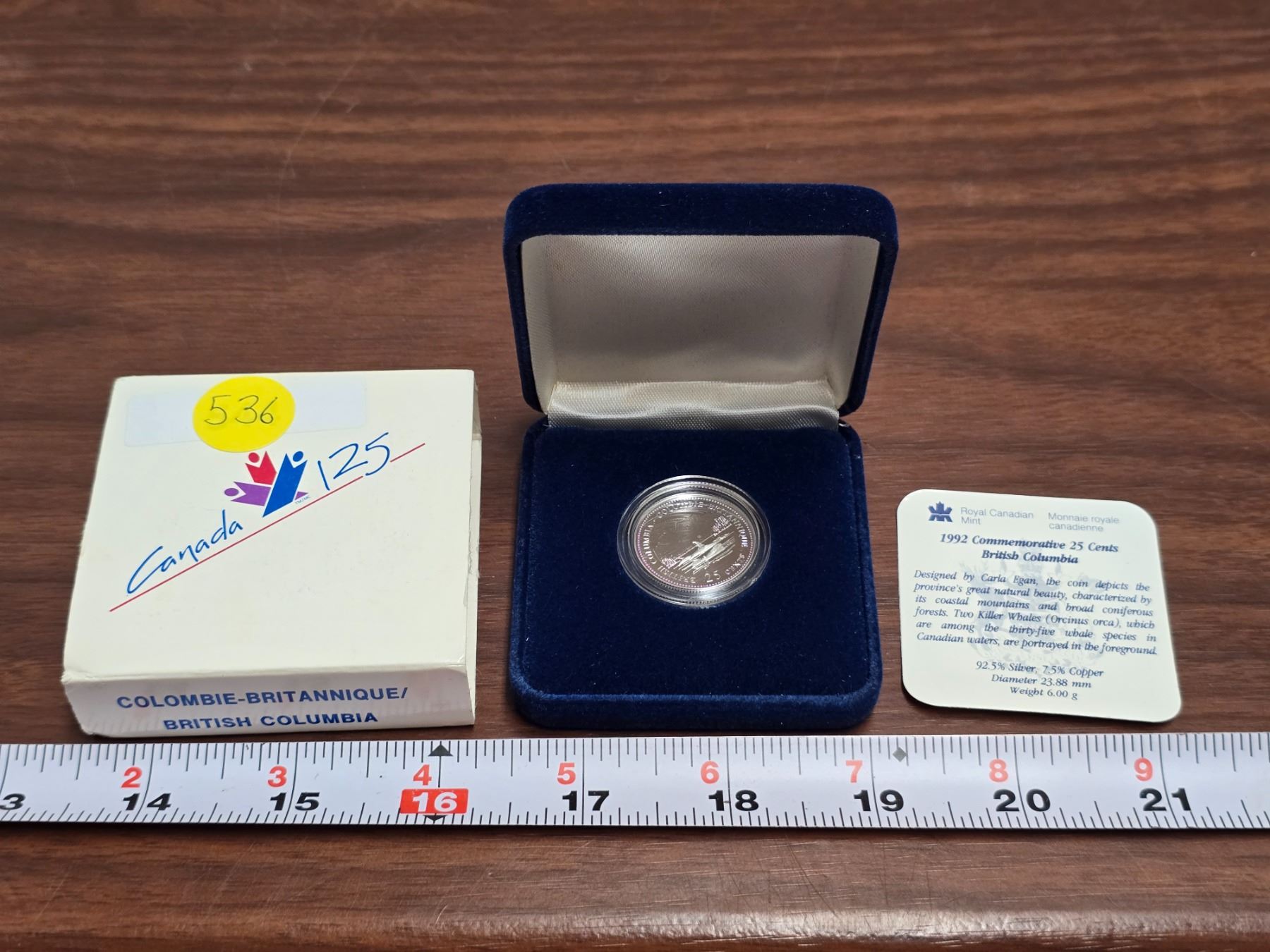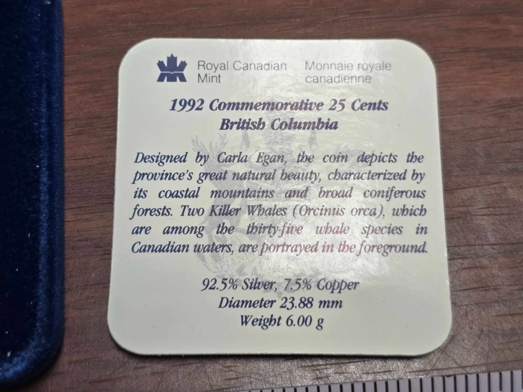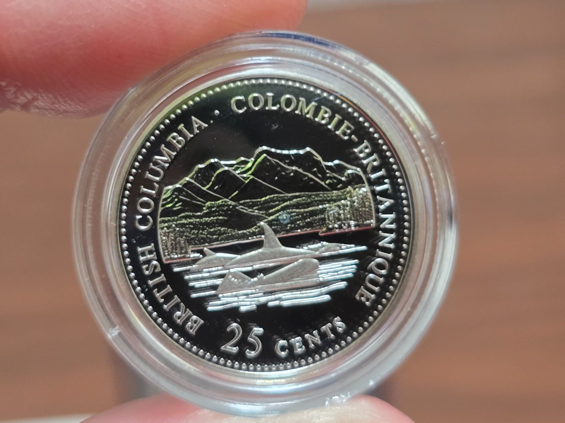 1992 Canadian 125th Anniversary "British Colombia" silver proof 25 cent coin, in RCM case.