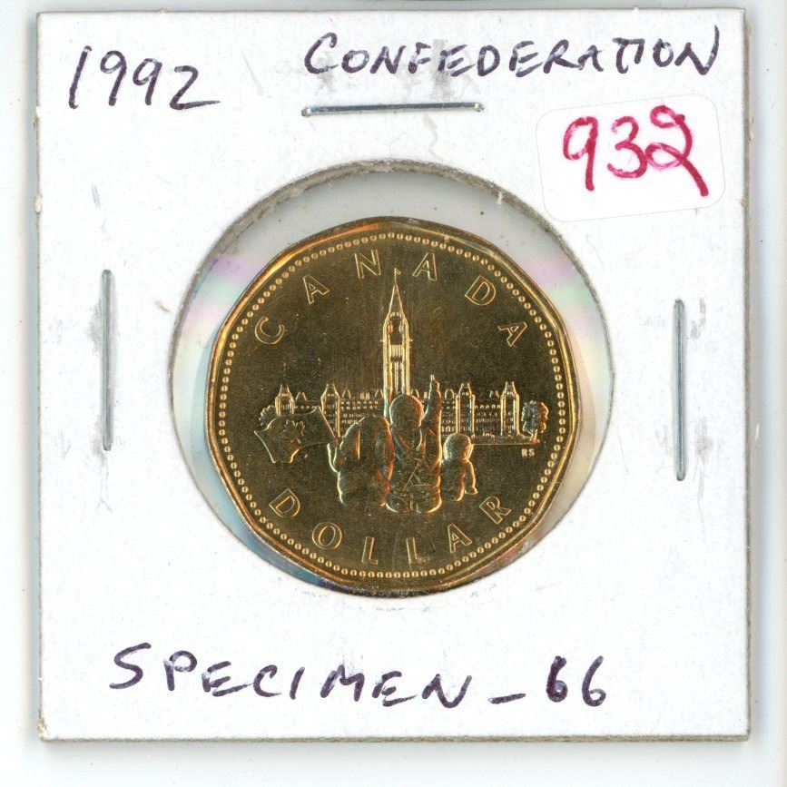 1992 Confederation Loonie Dollar. Commemorates the 125th Anniversary of Confederation. Specimen-66.