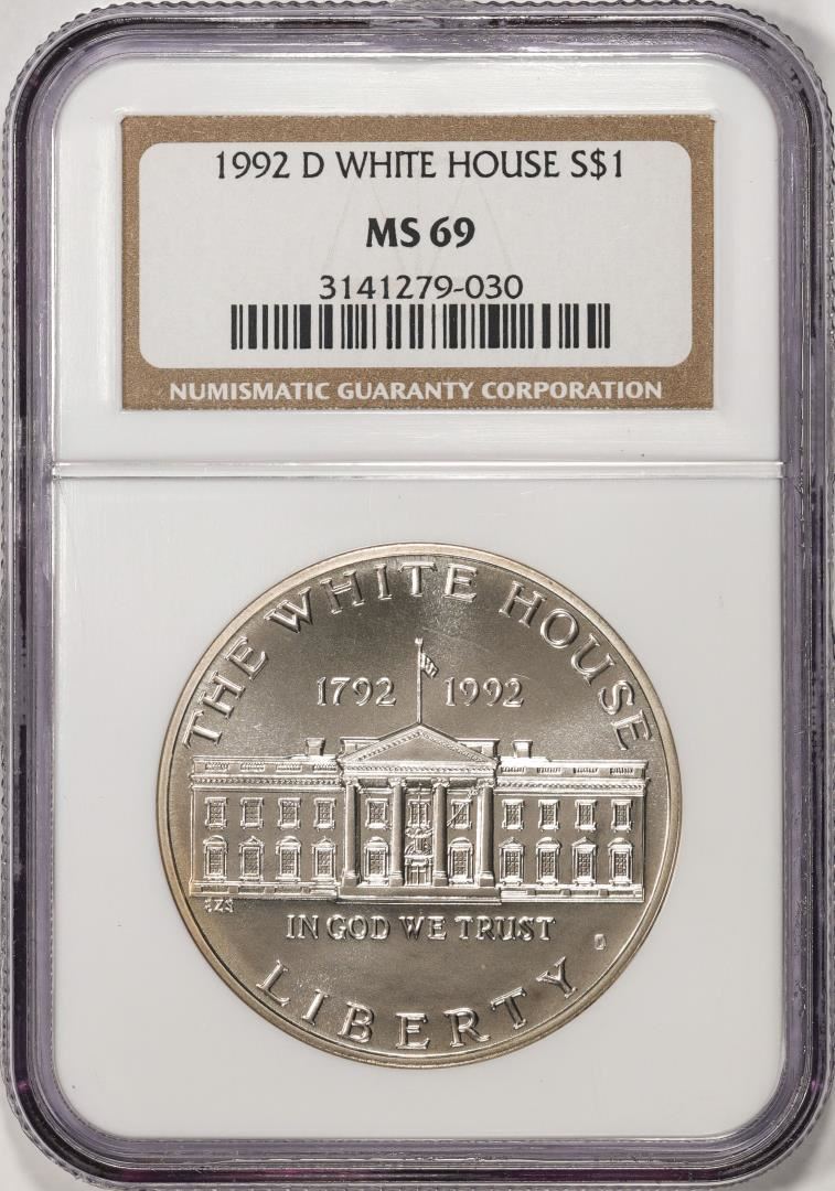 One 1992-D $1 White House Commemorative Silver Dollar Coin NGC MS69. NGC Certified.