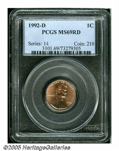 <B>1992-D<1C> MS69 Red PCGS.</B></I> Boldly struck with radiant pinkish-gold surfaces that boldly approach perfection. Population: 5 in 69, 0 finer (4/05).<BR><I>From The Western Hills Collection.</B></I>