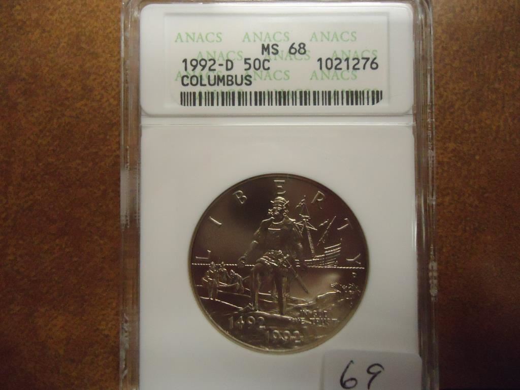 1992-D COLUMBUS HALF DOLLAR ANACS MS68