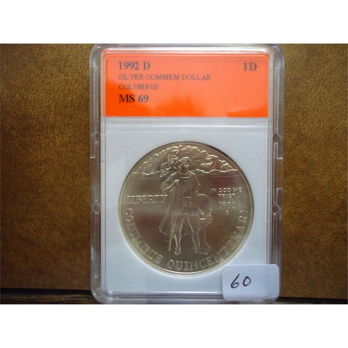 1992-D COLUMBUS SILVER DOLLAR MS69