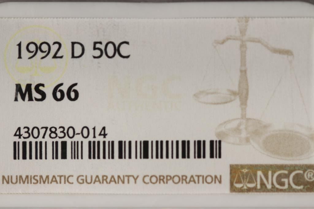 1992-D KENNEDY HALF DOLLAR NGC MS66