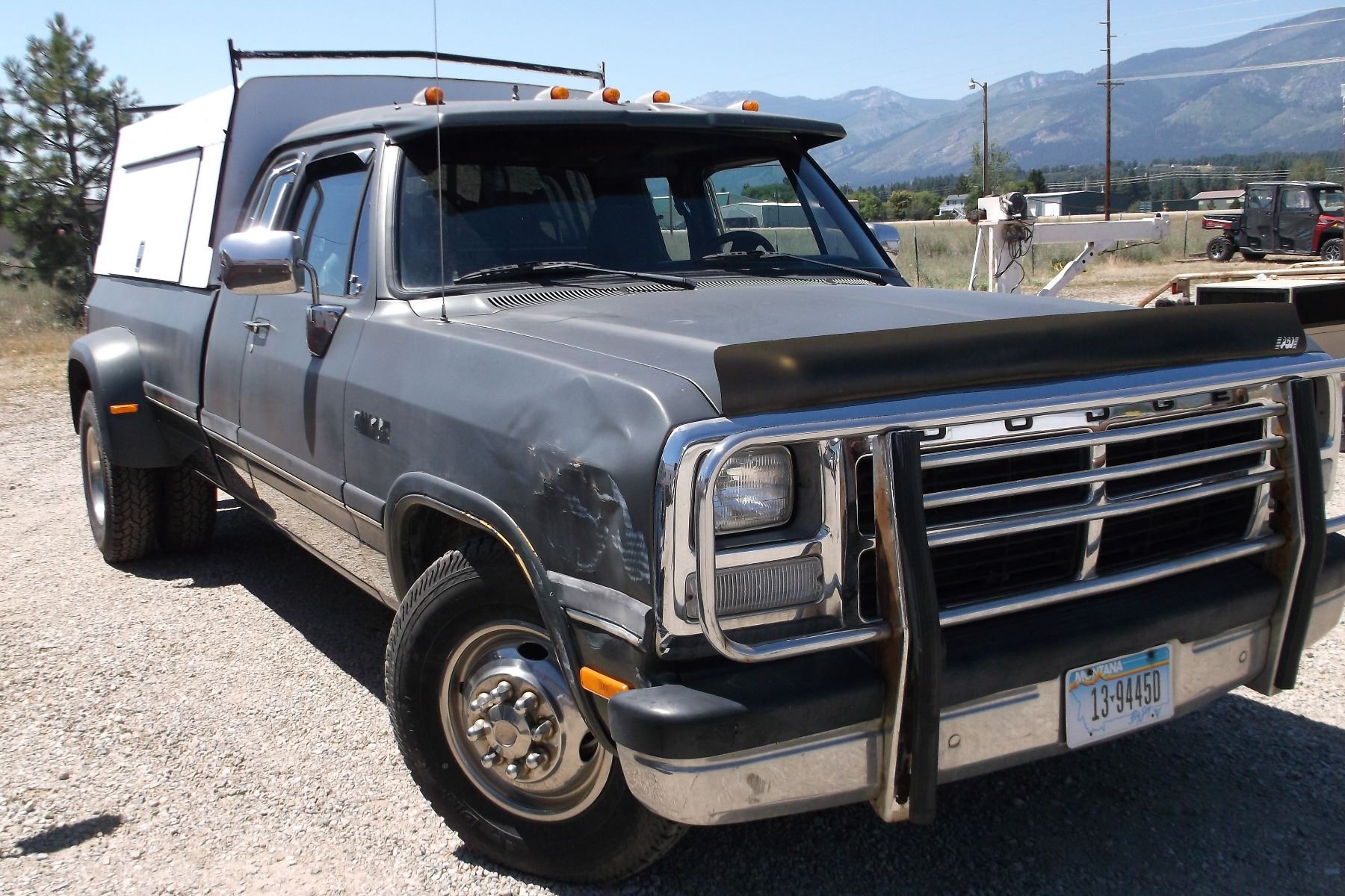 1992 Dodge D-350 Dually Pick-Up- 12 Valve Cummins Turbo Diesel- Extended Cab- New Tires- Automatic- Topper w/side doors- 147,777 miles, Runs Good- Seems Mechainically Sound- Dent in Passenger Fender-Clear MT Title.