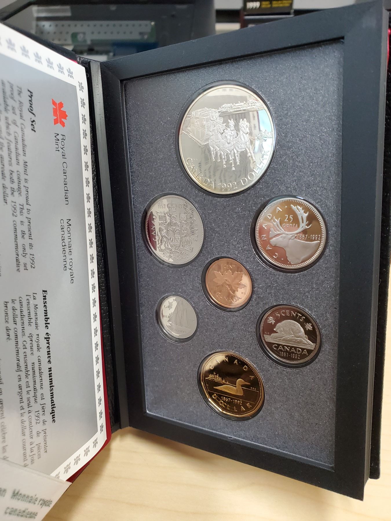 1992 Double Dollar Proof Set. 7-coin set includes Kingston Stagecoach Silver Dollar. Proof with Ultra Heavy Cameos. Housed in its original case & box of issue.