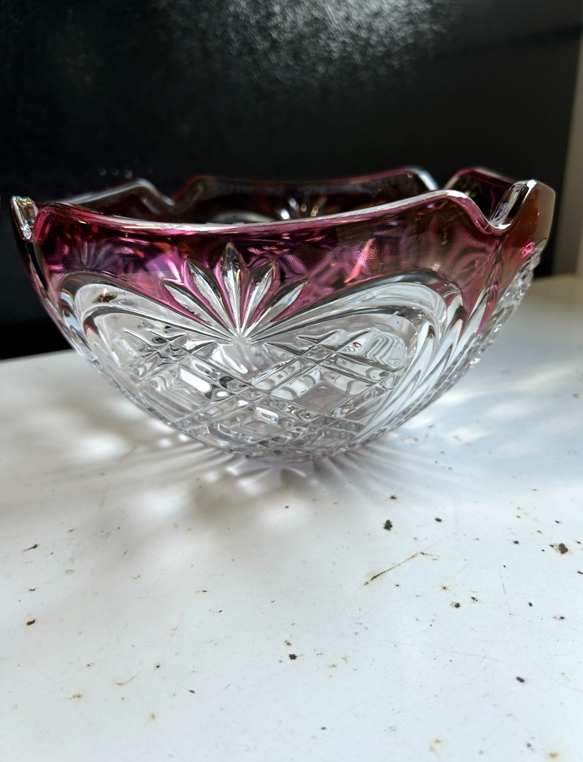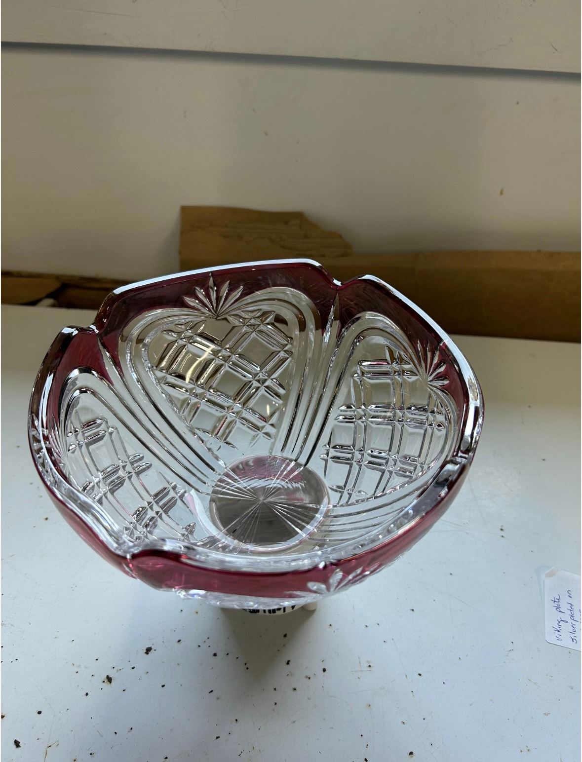 1992 Fostoria Crystal Cut Glass Red Ruby Rim Serving Bowl
