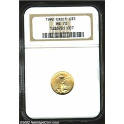 1992 G$5 Tenth-Ounce Gold Eagle MS70 NGC. A splendid, perfectly preserved example of this classic Am