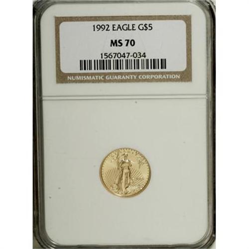 1992 G$5 Tenth-Ounce Gold Eagle MS70 NGC. NGC Cens