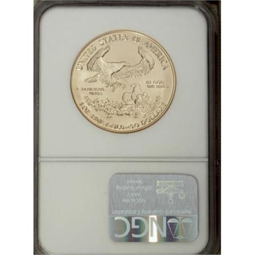 <B>1992 G$50 One-Ounce Gold Eagle MS70 NGC.</B></I> NGC Census: (26/0). PCGS Population (6/0). Mintage: 275,000. Numismedia Wsl. Price for NGC/PCGS coin in MS70: $1,500. (#9864)<BR><BR><b>Shipping:</b> Coins & Currency (<a target="_blank" href="http://www.heritageauctions.com/common/shipping.php">view shipping information</a>)