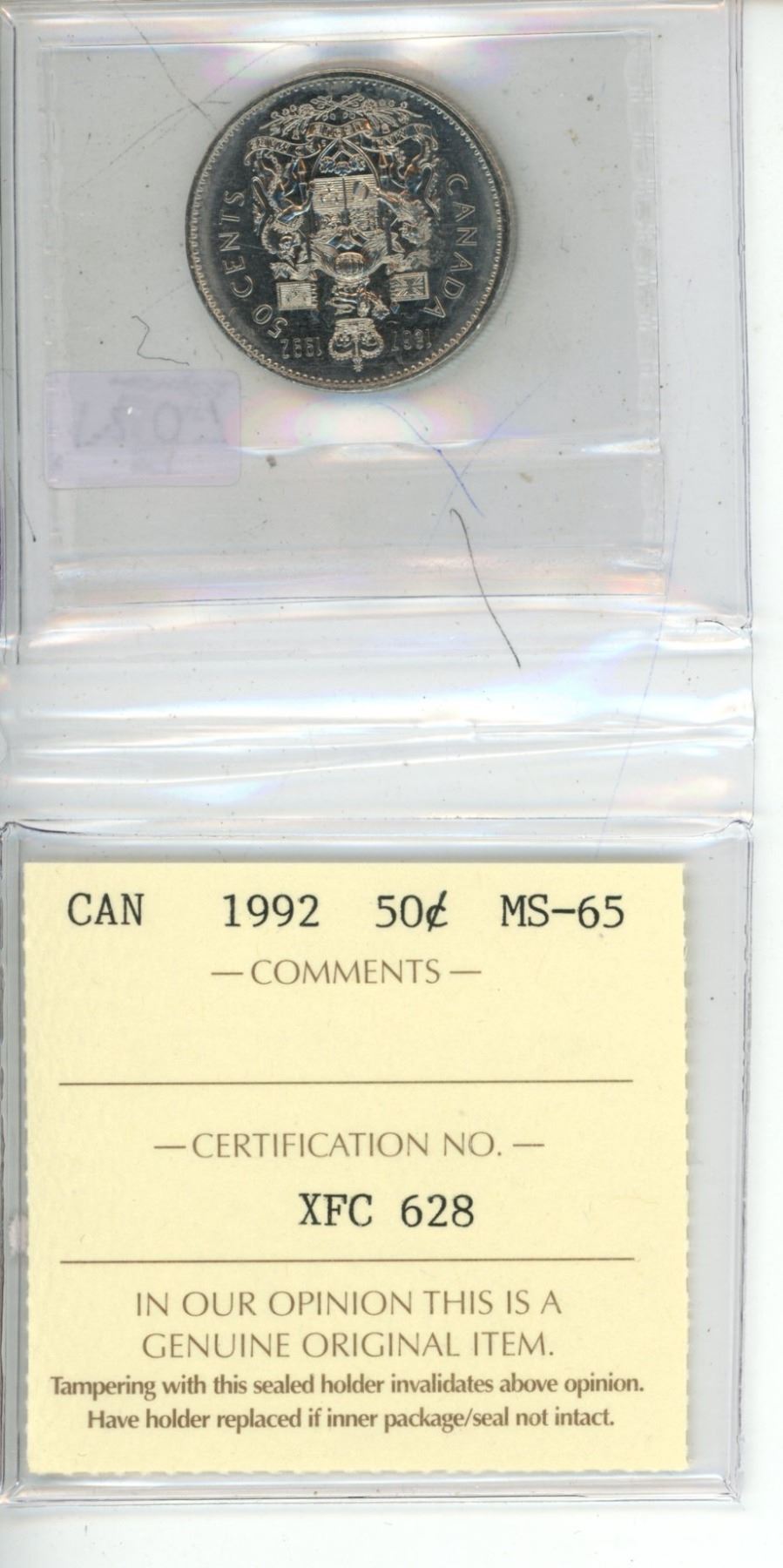 1992 ICCS Graded - Canadian Fifty Cent - MS65