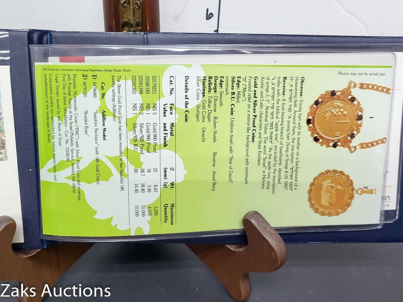 1992 ISRAEL ROE DEER SILVER COIN AND STAMP BOOK