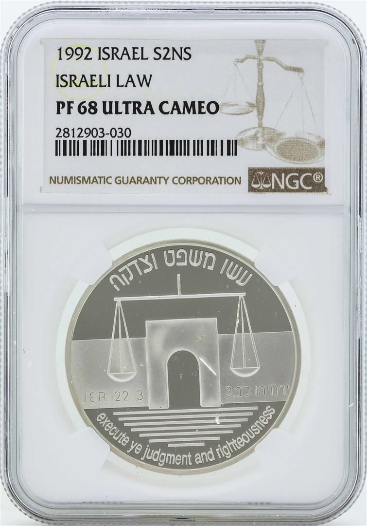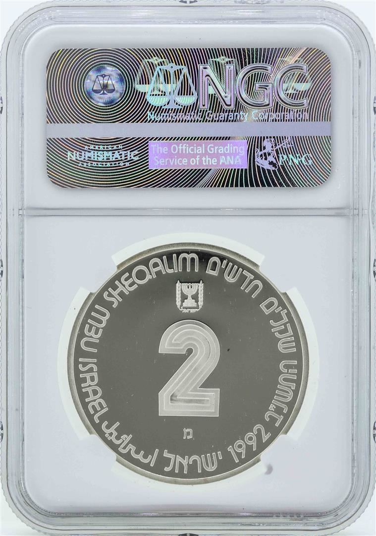 One 1992 Israel 2 Sheqalim Silver Proof Coin NGC PF68 Ultra Cameo. NGC Certified.