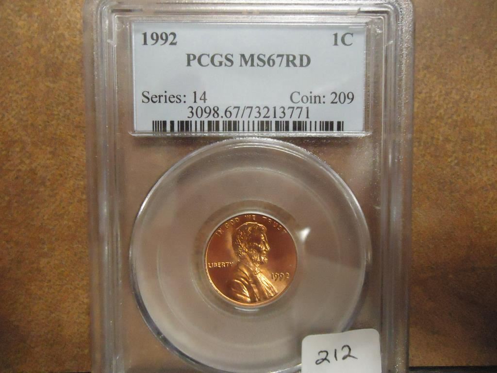 1992 LINCOLN CENT PCGS MS67 RD