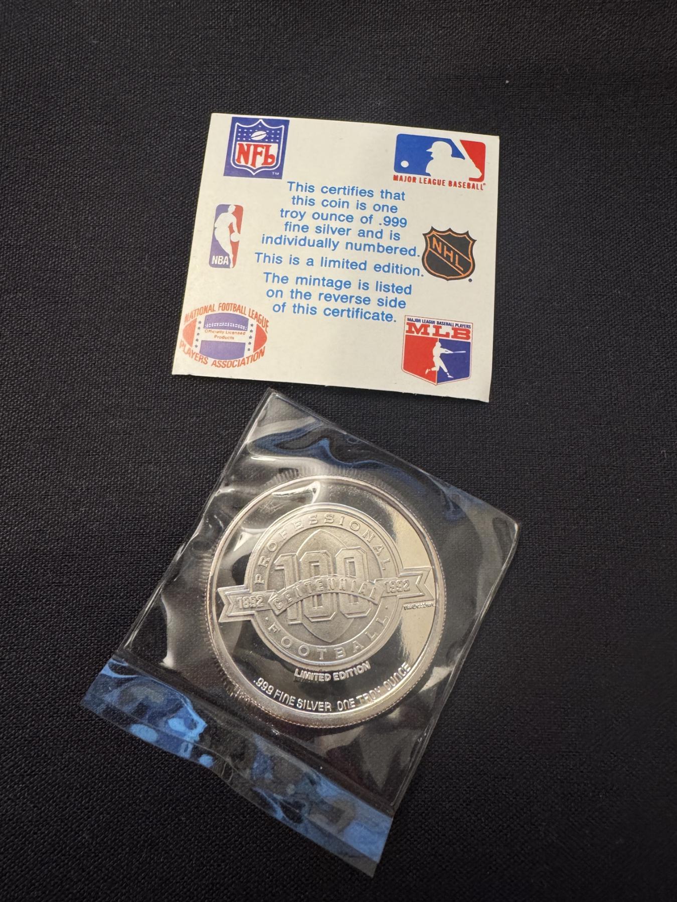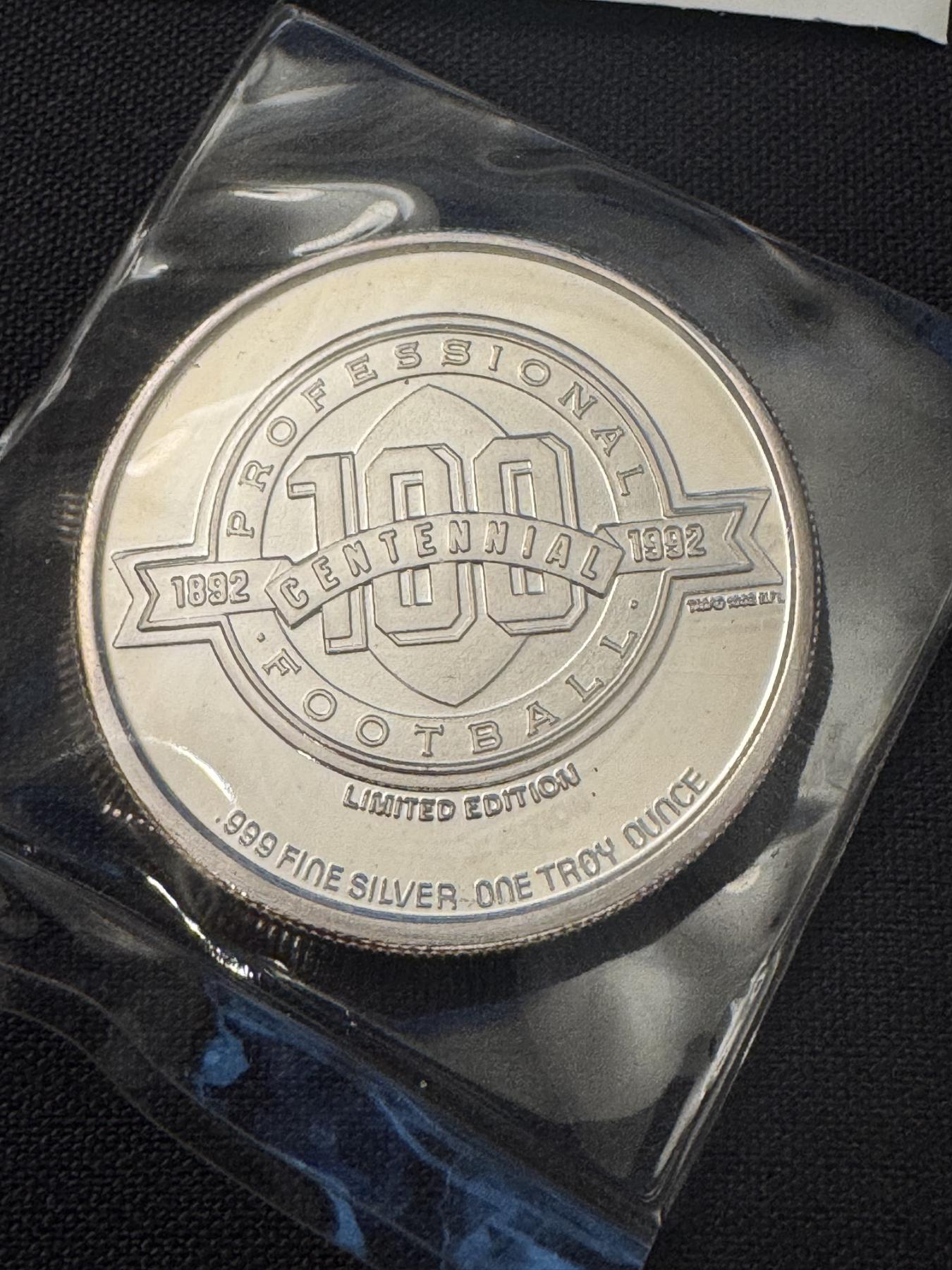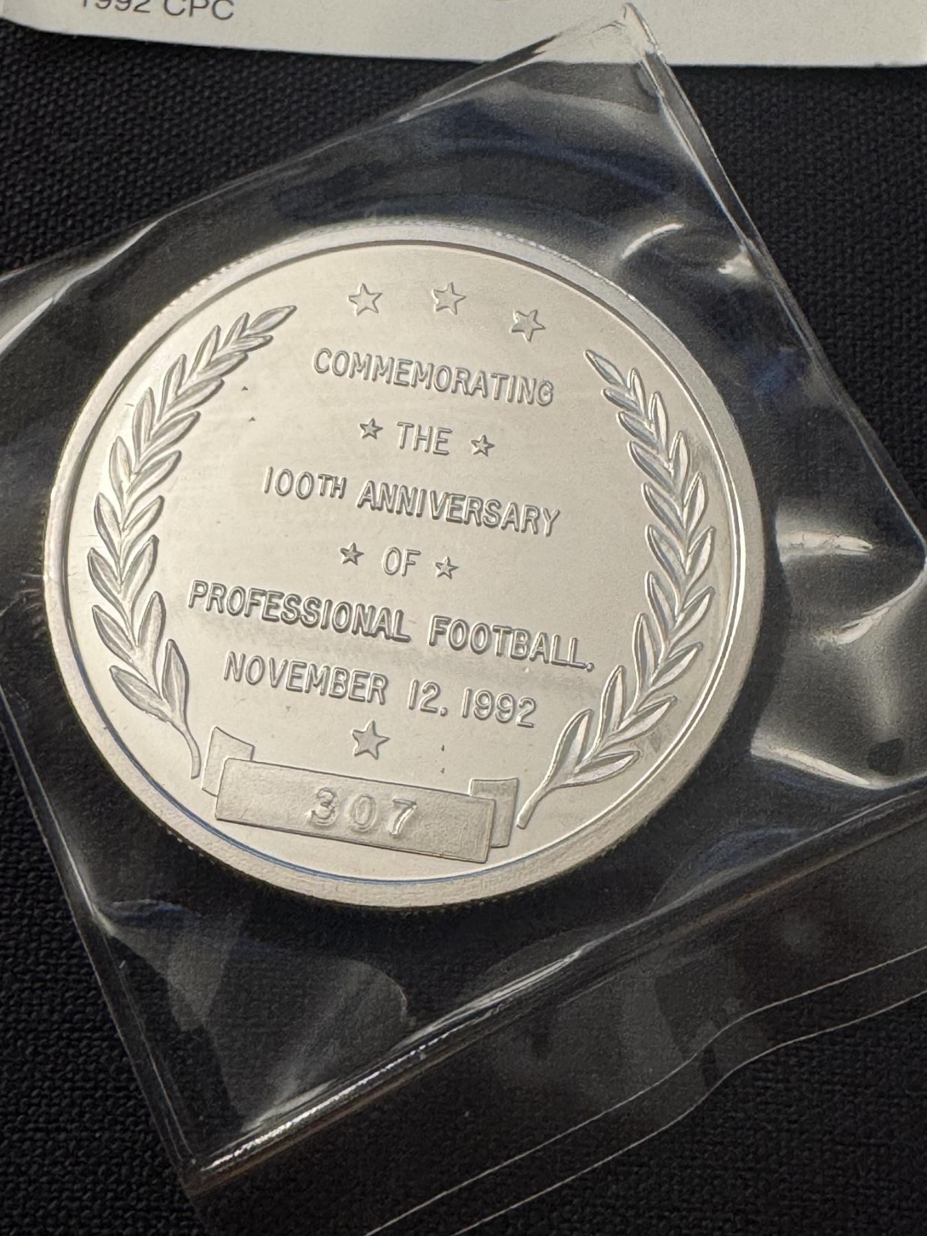 1992 Limited Edition 100 Years of NFL Football .999 Fine 1 Oz Silver Coin